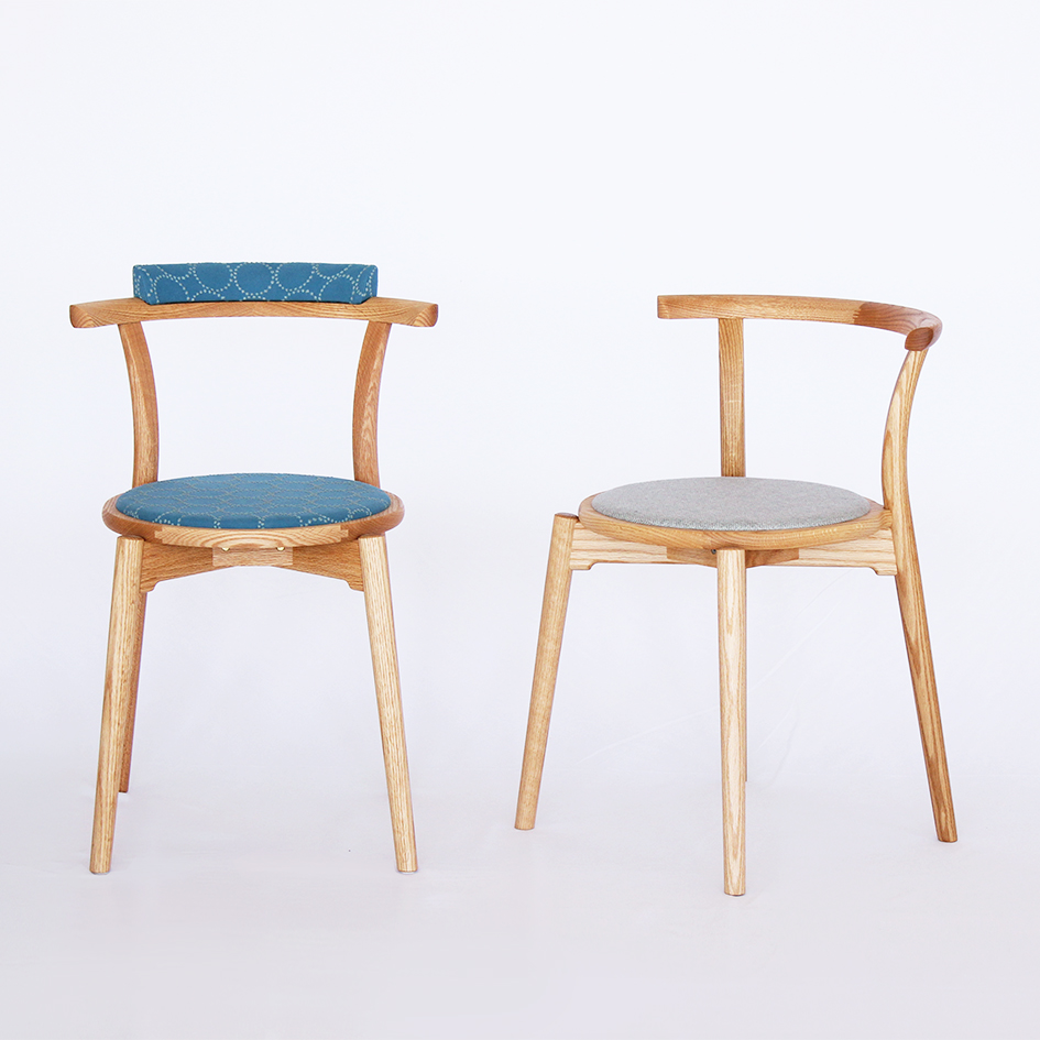 この椅子は、ヤクモ家具製作所がある島根県出雲地方の蕎麦に由来しています。出雲の蕎麦は、小さな器を重ねて提供する「割子(わりご)」が一般的で、味の違いを楽しめたり、少しずつ追加できたりする魅力があります。その可変性や組み合わせの自由さを今のライフスタイルに活かせないかと考えました。場所やシーンに合わせて座面と背もたれの自由な組み合わせを楽しめる、コンパクトでフレキシブルな椅子が完成しました。